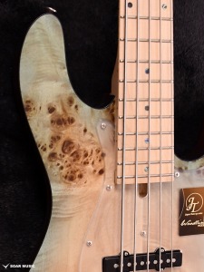 ボディトップを飾るのはバール杢の出ているポプラ材。ポプラは主に北米に分布する木ですが、北海道のポプラ並木など日本でも馴染みのある木材です。