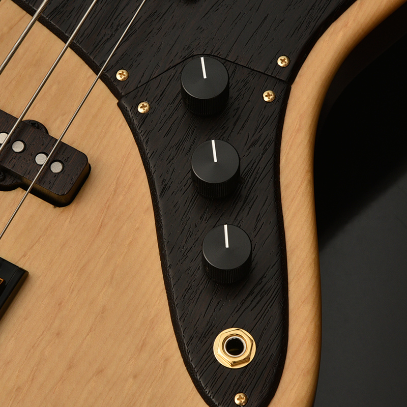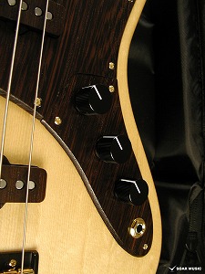 コントロールは一般的なJBスタイルの2Vol、1Tone(Turbo Switch)。トーンノブをプルアップすると二つのピックアップをシリーズ接続し、ハムバッキングタイプPUの様な太いサウンドを作ることが出来ます。(ターボスイッチをONしている間のボリュームコントロールはフロントボリュームノブで行い、リアボリュームノブはバイパスされます。)