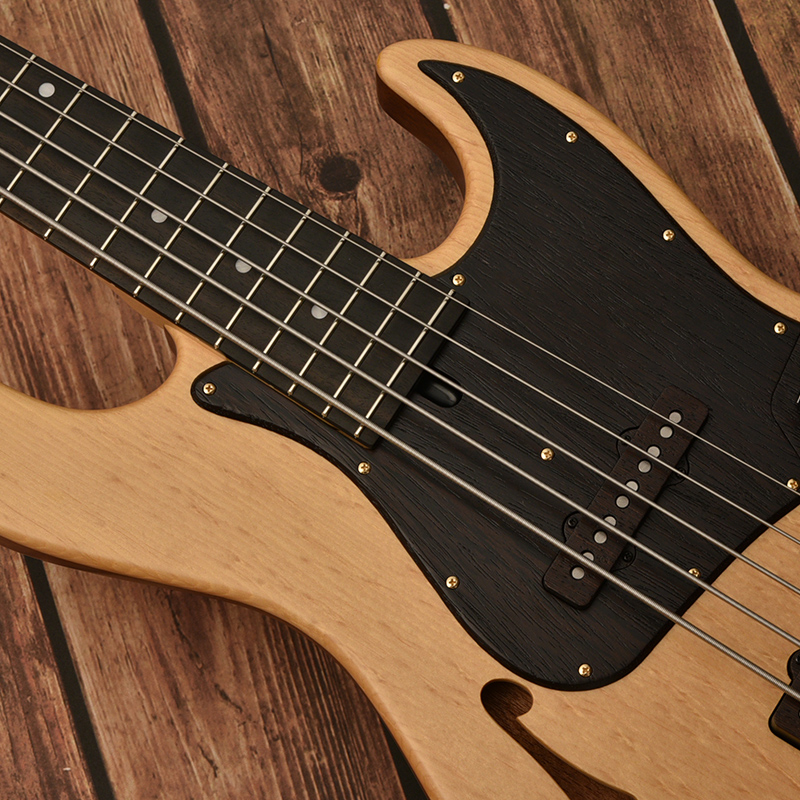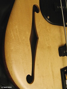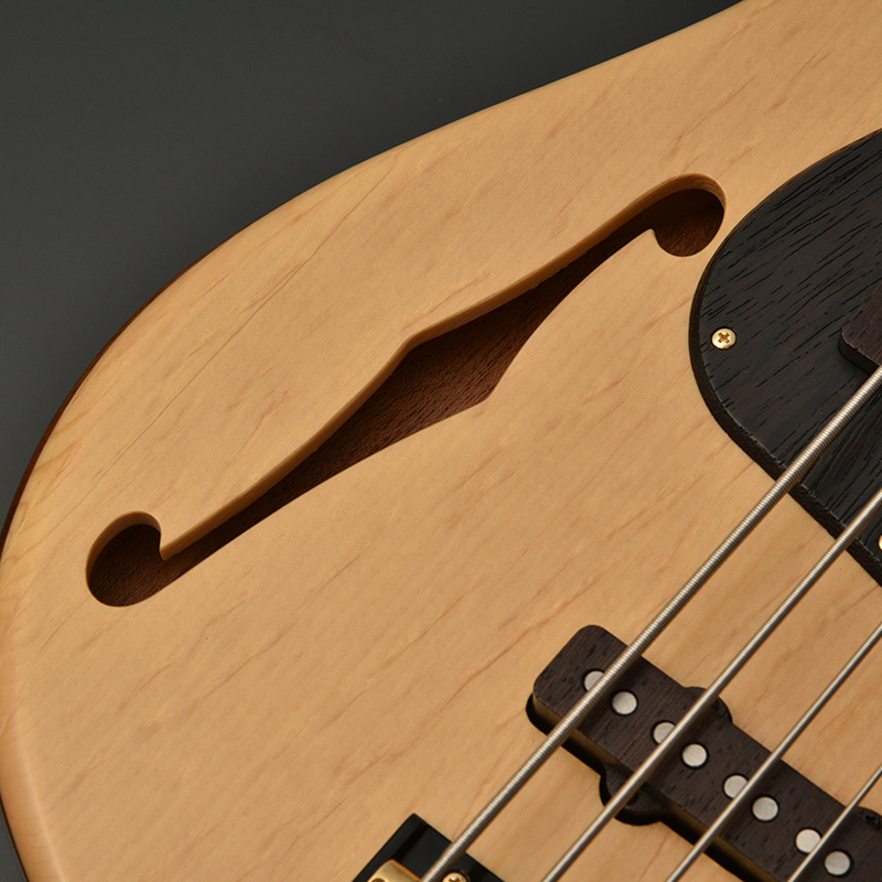 ボディに空洞部分を作り、Fホールを設けたことでジャジーなルックスとなるだけでなく、アコースティックライクな材との組み合わせによりサウンドにエアー感が生まれます。また、ボディも軽量になるため演奏ストレスの軽減にもなります。