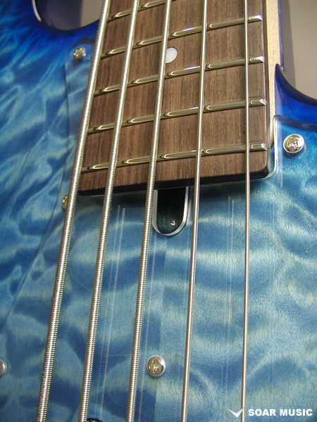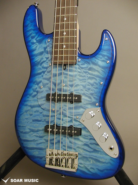 アルダーバックのボディでベースらしい中低音域はそのままにボディトップのキルテッドメイプルは美しいルックスだけでなく、埋もれがちな中低音域に程よいアタックレスポンスを加えています。また、ローズ指板ネックでより中低音域に焦点を絞ったどっしりとしたコシのあるサウンドが特徴です。