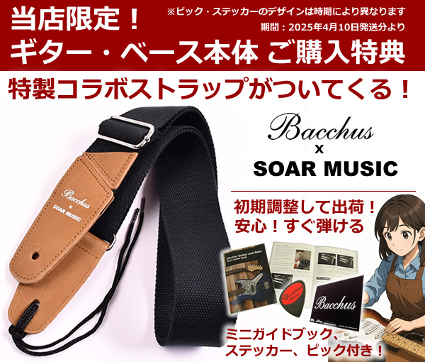 ローステッドメイプルとはメイプルを高温で加熱処理して材の中の水分や油分を揮発させることにより剛性を高めた材。ネックに使用されるとその効果は安定性だけでなくサウンドにも及び、豊かな生鳴りと経年変化したビンテージのようなこなれたトーンを生み出します。高級機種で使われることの多いこの本格派仕様をリーズナブルな価格帯に落とし込んだBacchusの新しい製品ラインナップです。