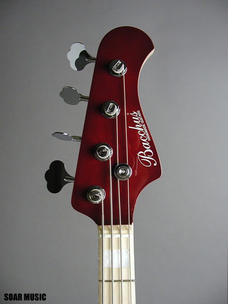 人気パッシブモデルのひとつ、WOOD LINE ASH 4 のレアカラー ダークチェリーです。 材の特性を最大限に活かすパッシブピックアップ仕様で、 楽器本来の鳴りをストレートに表現しながらも、プレイヤーの意図するニュアンスを余すことなく再現。 ライトアッシュボディーに施された極薄のラッカー塗装が美しい木目を一層鮮やかに際立たせています。 ネックサイドに施されたインレイとも相まり、 その美しさは溜息が出るほど。 ペグには高い安定性が定評のGOTOH社製のペグを使用。 ブリッジ部にはバッカスオリジナルの Bacchus DB を搭載しており、弦振動をストレートに 伝え、安定したテンションバランスを持ち、細かいセッティングも可能です。 Bacchusというブランドの品質の高さを改めて感じさせてくれる、 国産ハンドメイドの誇り高い逸品です。