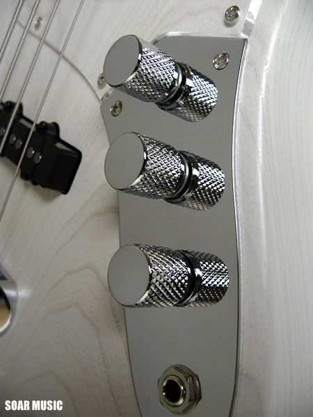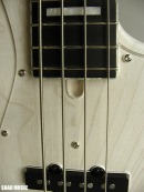 通常の2ピックアップタイプのベースはフロントピックアップ、 リアのピックアップをパラレル(並列)で配線してますが、 WOOD LINE ASH はターボスイッチを搭載しており、 トーンノブを引っ張るとフロント/リアピックアップを連動させたシリーズ(直列)回路に 切り替わり、出力がアップします。 ターボON (シリーズ)時はフロント/リアピックアップが 連動し、ハムバッキングタイプの ピックアップになり、フロントピックアップの ボリュームノブで音量調節が可能になります。