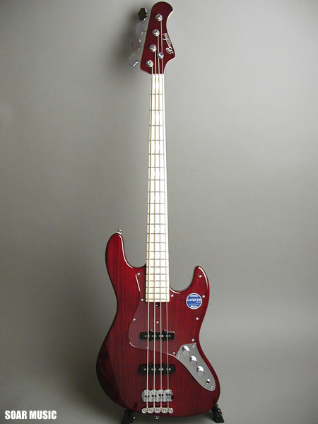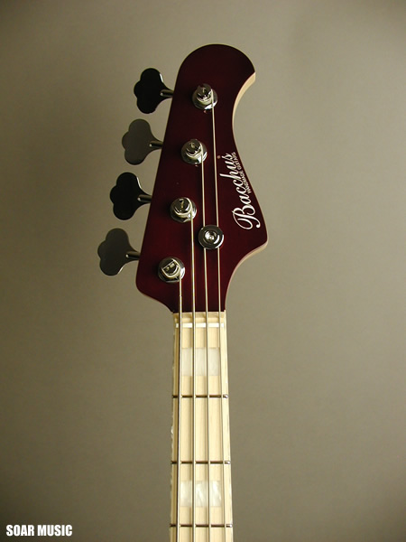 人気パッシブモデルのひとつ、WOOD LINE ASH 4 のレアカラー シースルーレッドです。 材の特性を最大限に活かすパッシブピックアップ仕様で、 楽器本来の鳴りをストレートに表現しながらも、プレイヤーの意図するニュアンスを余すことなく再現。 ライトアッシュボディーに施された極薄のラッカー塗装が美しい木目を一層鮮やかに際立たせています。 ネックサイドに施されたインレイとも相まり、 その美しさは溜息が出るほど。 ペグには高い安定性が定評のGOTOH社製のペグを使用。 ブリッジ部にはバッカスオリジナルの Bacchus DB を搭載しており、弦振動をストレートに 伝え、安定したテンションバランスを持ち、細かいセッティングも可能です。 Bacchusというブランドの品質の高さを改めて感じさせてくれる、 国産ハンドメイドの誇り高い逸品です。