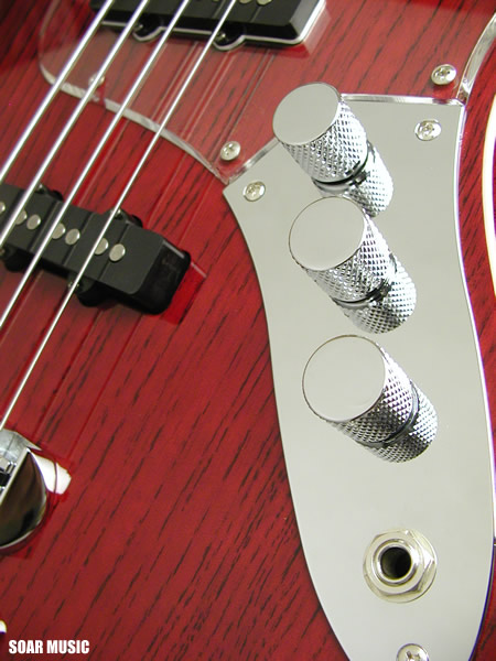 通常の2ピックアップタイプのベースはフロントピックアップ、 リアのピックアップをパラレル(並列)で配線してますが、 WOOD LINE ASH はターボスイッチを搭載しており、 トーンノブを引っ張るとフロント/リアピックアップを連動させたシリーズ(直列)回路に 切り替わり、出力がアップします。 ターボON (シリーズ)時はフロント/リアピックアップが 連動し、ハムバッキングタイプの ピックアップになり、フロントピックアップの ボリュームノブで音量調節が可能になります。
