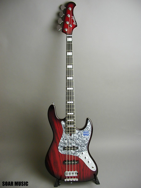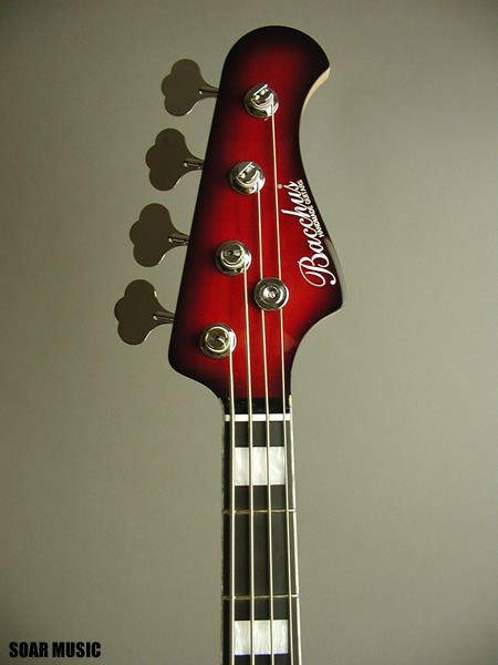 人気パッシブモデルのひとつ、WOOD LINE ASH 4 のレアカラー シースルーレッドです。 材の特性を最大限に活かすパッシブピックアップ仕様で、 楽器本来の鳴りをストレートに表現しながらも、プレイヤーの意図するニュアンスを余すことなく再現。 ライトアッシュボディーに施された極薄のラッカー塗装が美しい木目を一層鮮やかに際立たせています。 ネックサイドに施されたインレイとも相まり、 その美しさは溜息が出るほど。 ペグには高い安定性が定評のGOTOH社製のペグを使用。 ブリッジ部にはバッカスオリジナルの Bacchus DB を搭載しており、弦振動をストレートに 伝え、安定したテンションバランスを持ち、細かいセッティングも可能です。 Bacchusというブランドの品質の高さを改めて感じさせてくれる、 国産ハンドメイドの誇り高い逸品です。