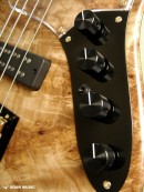 コントロールは上からマスター・ボリューム、バランサー、トレブル、ベースで、バランサーとトレブルノブの間にプリアンプON/OFFのミニスイッチが設けられています。プリアンプのON/OFFスイッチにより、プリアンプでのサウンドメイクの他、パッシブならではの繊細な出力もお選びいただけます。