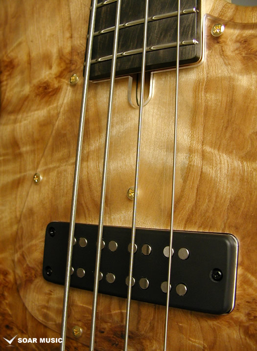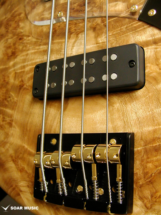 また、通常のジャズベースブリッジと同じトップローダー(表通し)での弦の張り方の他、スルーボディ(裏通し)にも対応できるようボディ加工が施されており、アタック音が強調され、よりボディ材の性質を強調させるなど、プレイヤーのスタイルに合わせて柔軟なセッティングが可能。