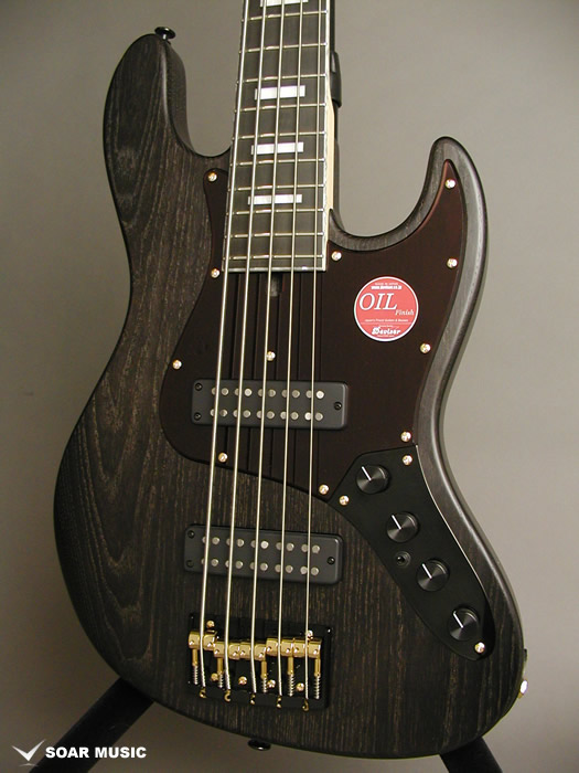 アクティブ仕様でプリアンプには2バンドEQのAguilar(アギュラー)OBP-2を搭載。更にハムピックアップによりパワフルで重厚感のある低音域ですが、ブーミー過ぎ、まとまったサウンドとなっています。ゴールド&ブラックカラーのハードウェアにより、精悍で落ち着きのあるルックスも魅力です。