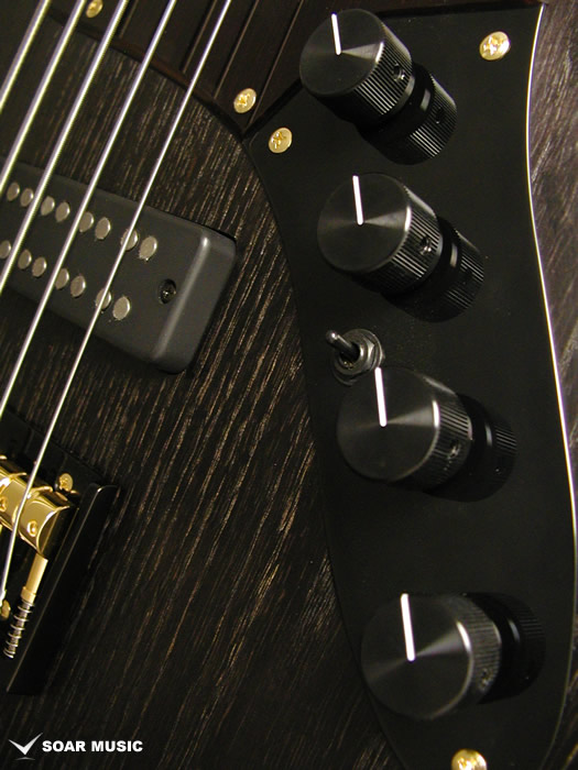 コントロールは上からマスター・ボリューム、バランサー、トレブル、ベースで、バランサーとトレブルノブの間にプリアンプON/OFFのミニスイッチが設けられています。プリアンプのON/OFFスイッチにより、プリアンプでのサウンドメイクの他、パッシブならではの繊細な出力もお選びいただけます。
