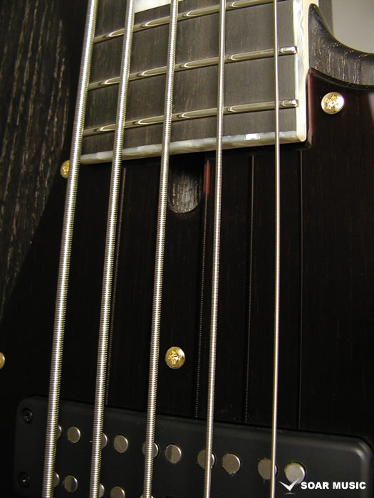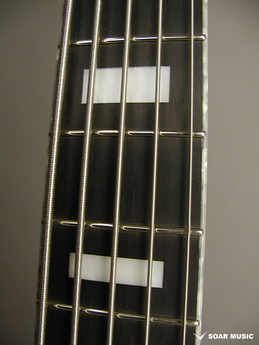 弦楽器の要ともなるネックはしっかりと管理されシーズニングを行ったメイプル材が使用されており、ネックのグリップ感と演奏性、剛性、安定性をバランス良く備え、ハンドメイド製作により丁寧に仕上げられています。手にフィットしやすいUシェイプネック、ネック裏はサテンフィニッシュで塗装されており、サラサラとした質感でスムーズなフィンガリングを可能にします。指板には粒立ちが良く、程よいレスポンスが得られるようエボニー材を使用しており、埋もれがちな低音サウンドにメリハリを与え、タイトな中低音域と芯のある高音域を奏でます。
