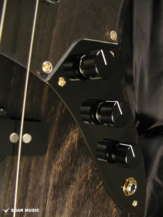 通常の2ピックアップタイプのベースはフロントピックアップ、リアのピックアップをパラレル(並列)で配線してますが、トーンノブを引っ張ることにより、フロント/リアピックアップを連動させたシリーズ(直列)回路に切り替わります。