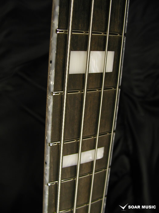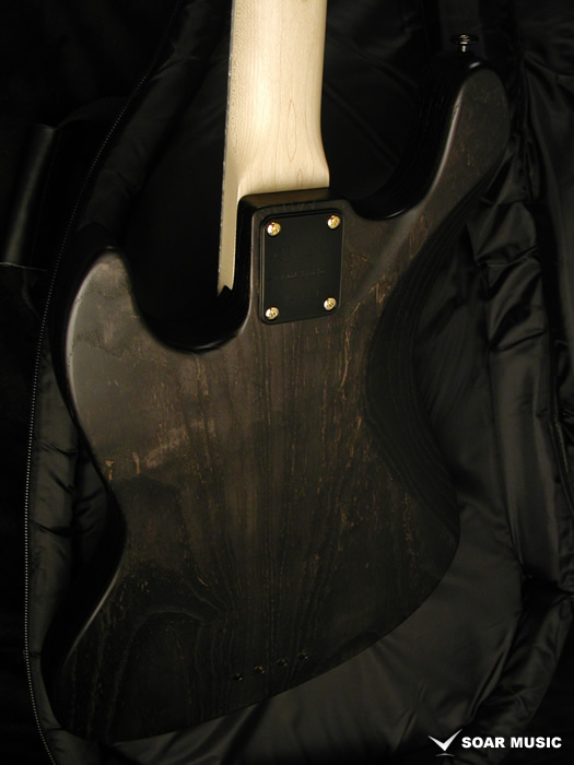 通常のジャズベースブリッジと同じトップローダー(表通し)での弦の張り方の他、スルーボディ(裏通し)にも対応できるようボディ加工が施されており、アタック音の強調や、ボディ材の性質をより際立たせるなど、プレイヤーのスタイルに合わせて柔軟なセッティングを可能にしています。