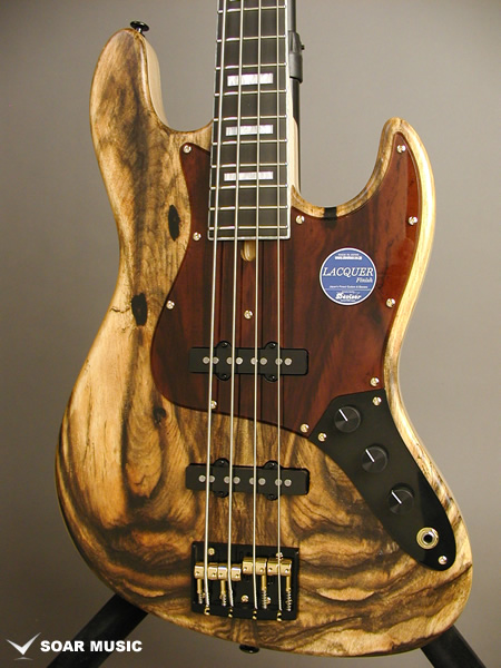 Exotic Wood Customの、黒柿をトップ材に使用した4弦パッシブベース。東京で行われた楽器フェア出展のために製作されたフェアモデルで、14本限定で製作されたうちの1本です。 油彩画のような黒柿の力強い木目が圧倒的な存在感を放っています。