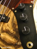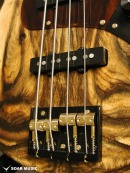 また、通常のジャズベースブリッジと同じトップローダー(表通し)での弦の張り方の他、スルーボディ(裏通し)にも対応できるようボディ加工が施されており、アタック音が強調され、よりボディ材の性質を強調させるなど、プレイヤーのスタイルに合わせて柔軟なセッティングを可能にします。他にもCTSポットやスイッチクラフト社製のジャックなど、細部のパーツに至るまで信頼の高い安定したパーツを使用しています。 |