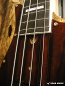 弦楽器の要ともなるネックはしっかりと管理されシーズニングを行ったメイプル材が使用されており、ネックのグリップ感と演奏性、剛性、安定性をバランス良く備え、ハンドメイド製作により丁寧に仕上げられています。手にフィットしやすいUシェイプネック、ネック裏はサテンフィニッシュで塗装されており、サラサラとした質感でスムーズなフィンガリングを可能にします。指板には粒立ちが良く、程よいレスポンスが得られるようエボニー材を使用しており、埋もれがちな低音サウンドにメリハリを与えます。