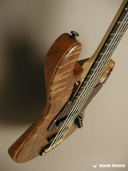 本モデルは、世界三大銘木の一つとも言われるクラロウォールナットをボディトップに、マホガニーをボディバックに使用。Aguilar OBP-2をプリアンプに搭載し、幅広いサウンドメイクが可能となっています。