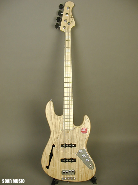 ホロウ構造を施す事により、広がりのあるふくよかなサウンド、豊かなサスティンを得つつ、さらにボディにアッシュ材を使用しているためレスポンスも良く、輪郭のはっきりとしたサウンドが魅力です。また、材の特性、楽器本来の鳴りをストレートに表現するパッシブピックアップを搭載し、レギュラーのWOODLINEシリーズと同様、ピックアップの回路をパラレル(並列)、シリーズ(直列)に切り替えるターボスイッチを搭載。パラレル時には通常のジャズベース仕様、シリーズ時は低音域の厚みが増した太いサウンドなど、幅広いサウンドメイクが可能です。