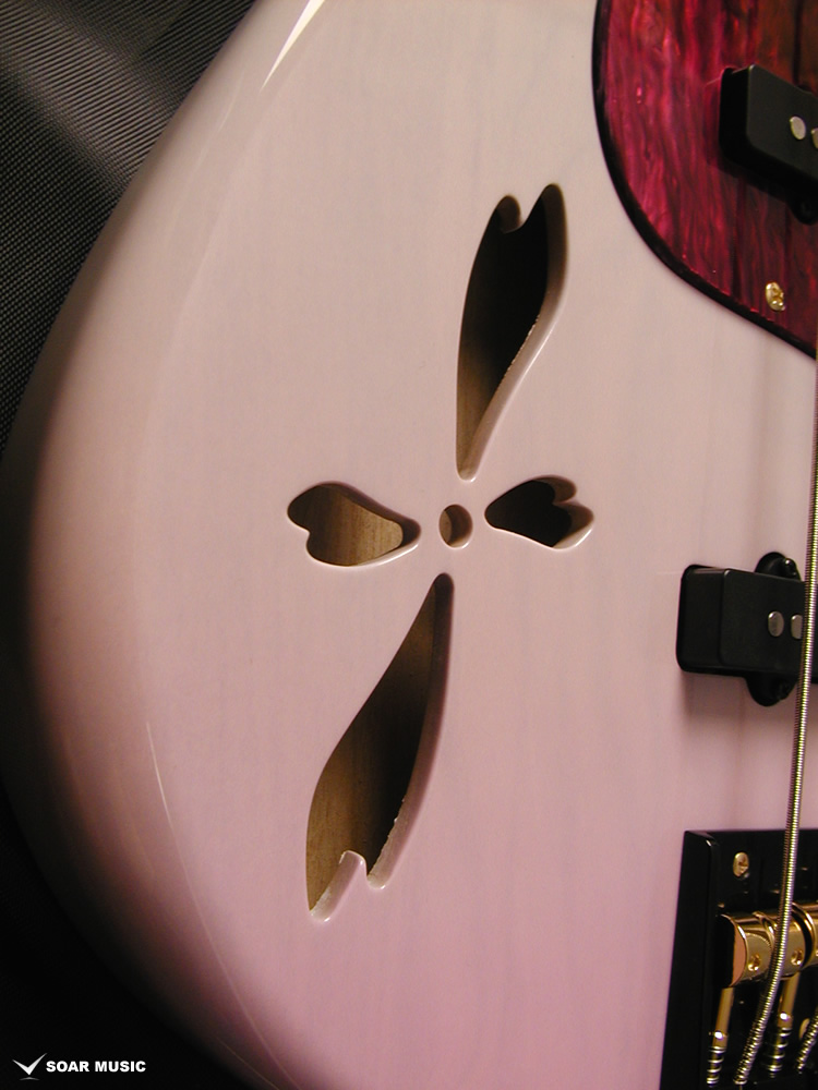 その美しい見た目だけでなく、ギターの材料としても十分な硬質さを持つサクラ材。ボディバックに用いられる定番のアルダーとも高相性を見せ、ジャンルを選ばない安定感のあるサウンドを持ち味とします。