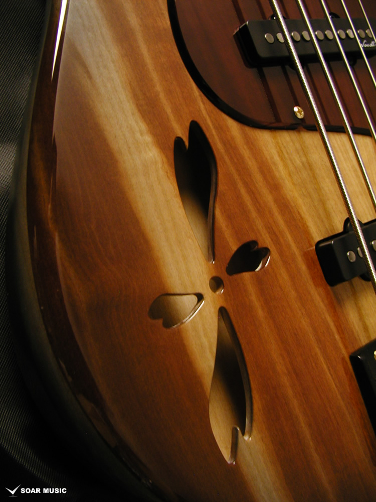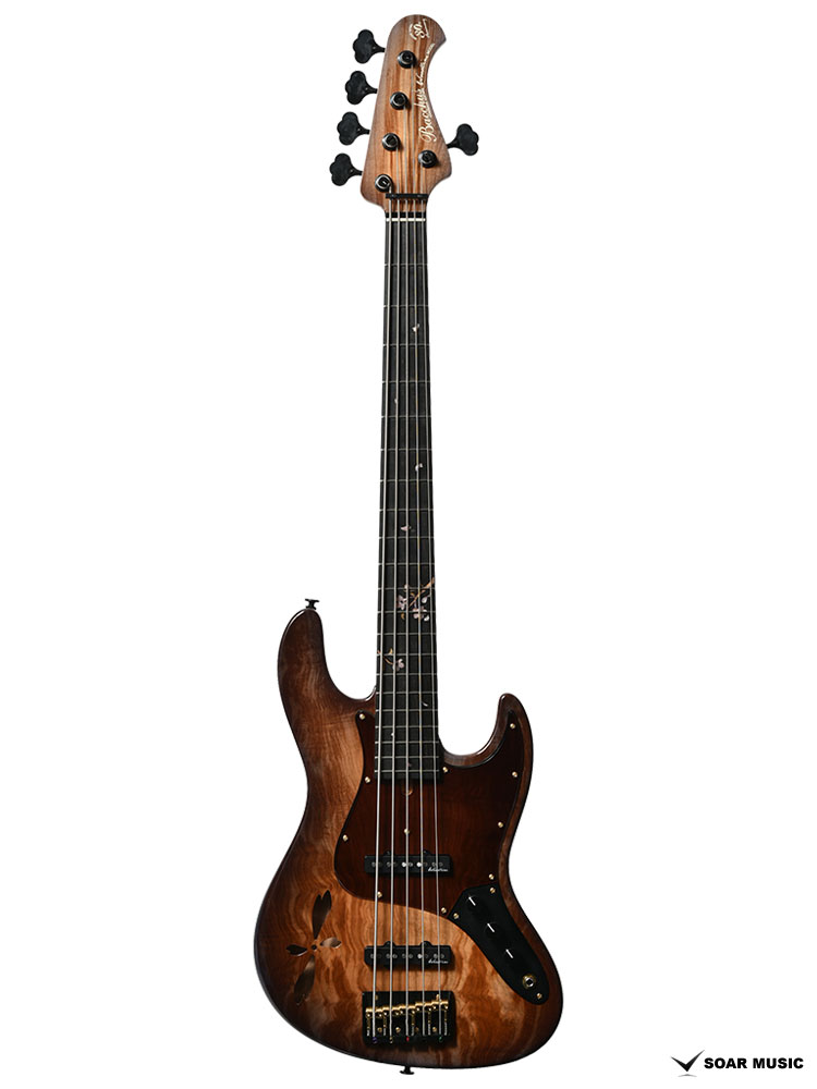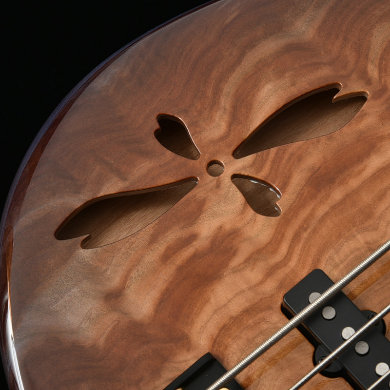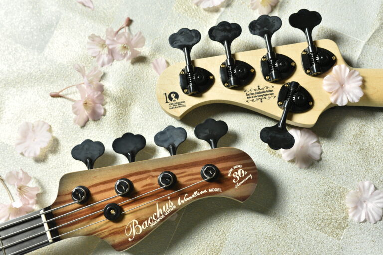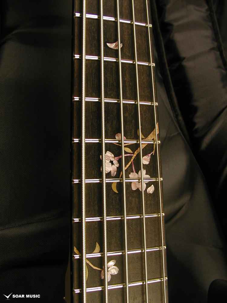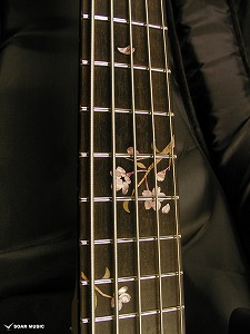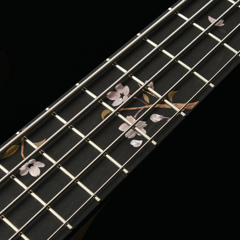 アクリルと木材を組み合わせ、指板上に美しい葉桜のインレイをデザイン。通常のポジションマークから持ち替えても違和感なく演奏できるよう、機能的な面も考慮されています。
