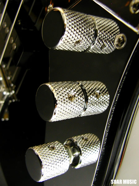 通常の2ピックアップタイプのベースはフロントピックアップ、リアのピックアップをパラレル(並列)で配線してますが、トーンノブを引っ張ることにより、フロント/リアピックアップを連動させたシリーズ(直列)回路に切り替わります。