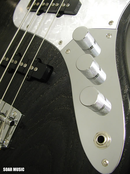 通常の2ピックアップタイプのベースはフロントピックアップ、リアのピックアップをパラレル(並列)で配線してますが、トーンノブを引っ張ることにより、フロント/リアピックアップを連動させたシリーズ(直列)回路に切り替わります。