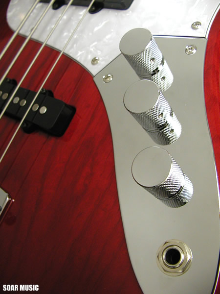 通常の2ピックアップタイプのベースはフロントピックアップ、リアのピックアップをパラレル(並列)で配線してますが、トーンノブを引っ張ることにより、フロント/リアピックアップを連動させたシリーズ(直列)回路に切り替わります。