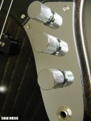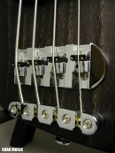 通常の2ピックアップタイプのベースはフロントピックアップ、 リアのピックアップをパラレル(並列)で配線してますが、 WOOD LINE ASH はターボスイッチを搭載しており、 トーンノブを引っ張るとフロント/リアピックアップを連動させたシリーズ(直列)回路に 切り替わり、出力がアップします。 ターボON (シリーズ)時はフロント/リアピックアップが 連動し、ハムバッキングタイプの ピックアップになり、フロントピックアップの ボリュームノブで音量調節が可能になります。