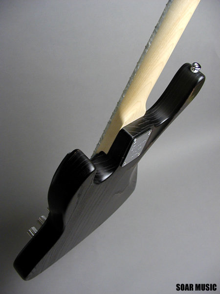 バッカスオリジナルのオイルフィニッシュによるアッシュ材の質感に、レザーのピックガードが良い雰囲気で馴染みます。