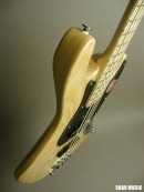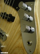 通常の2ピックアップタイプのベースはフロントピックアップ、 リアのピックアップをパラレル(並列)で配線してますが、 WOOD LINE ASH はターボスイッチを搭載しており、 トーンノブを引っ張るとフロント/リアピックアップを連動させたシリーズ(直列)回路に 切り替わり、出力がアップします。 ターボON (シリーズ)時はフロント/リアピックアップが 連動し、ハムバッキングタイプの ピックアップになり、フロントピックアップの ボリュームノブで音量調節が可能になります。