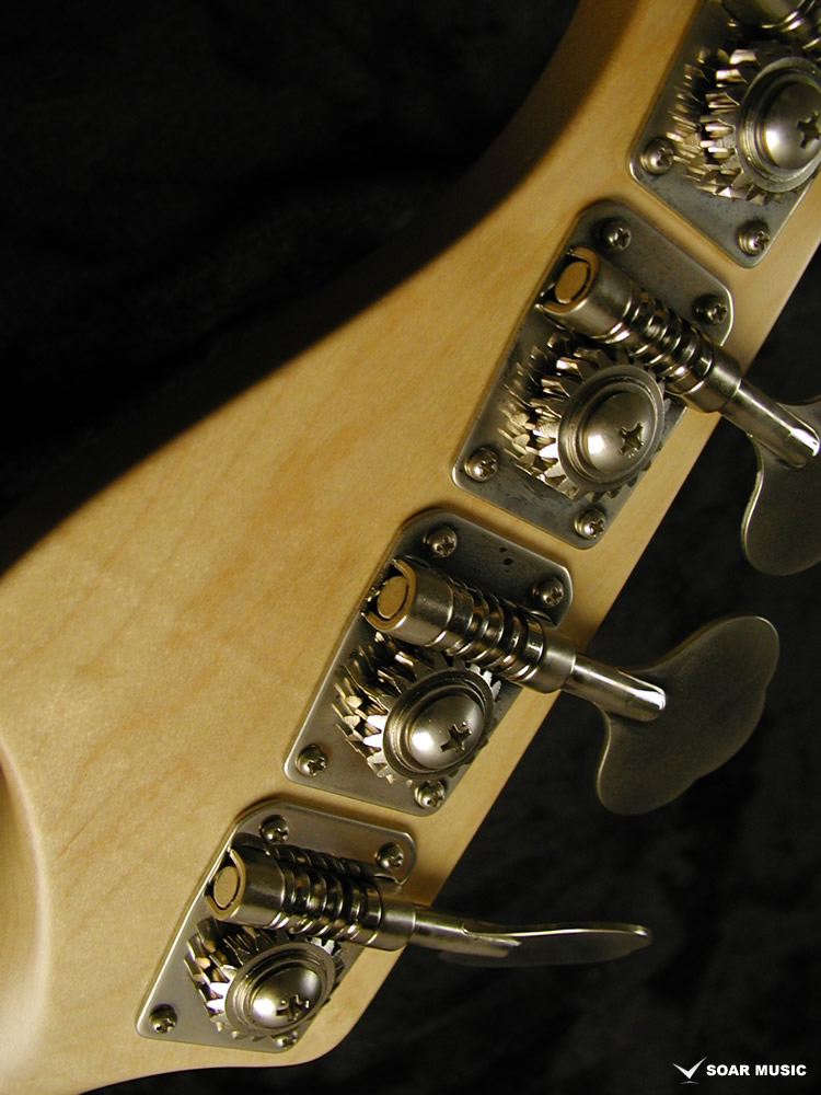 通常の2ピックアップタイプのベースはフロントピックアップ、リアのピックアップをパラレル(並列)で配線してますが、トーンノブを引っ張ることにより、フロント/リアピックアップを連動させたシリーズ(直列)回路に切り替わります。