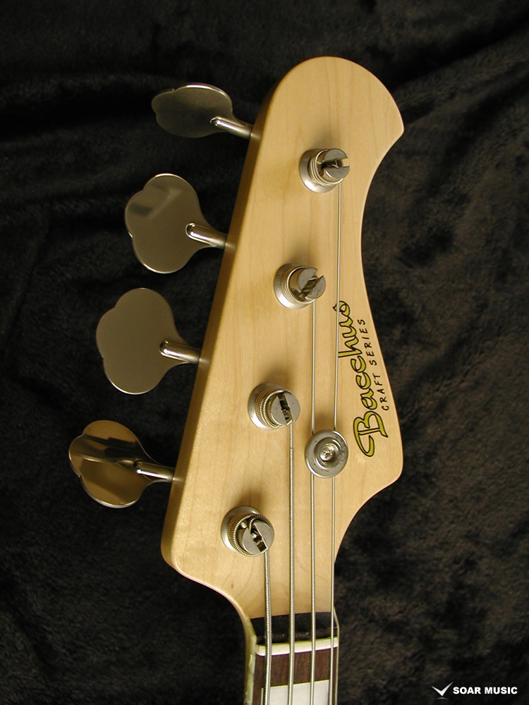 ピックガードの素材に革を採用した、レザーピックガードモデル!ハンドメイドシリーズの銘機WOODLINEをベースにしたクラフトシリーズのハイコストパフォーマンスモデル。 コストパフォーマンスに優れながらも妥協を廃し、高いトータルクオリティーを誇クラフトシリーズの新ラインアップ WL-JB4 ASH の登場です。 バッカスの最高峰ラインナップであるハンドメイドシリーズの銘機 WOODLINE ASH を基に製作されており、ターボスイッチの搭載によりパッシブピックアップならではの繊細なサウンドから、ターボONによるパワフルなサウンドまで幅広いニーズにお応えします。 また、この価格帯初のオイルフィニッシュ塗装で、材本来の鳴りを活かしたバッカスならではの非常に丁寧な造りが魅力です。