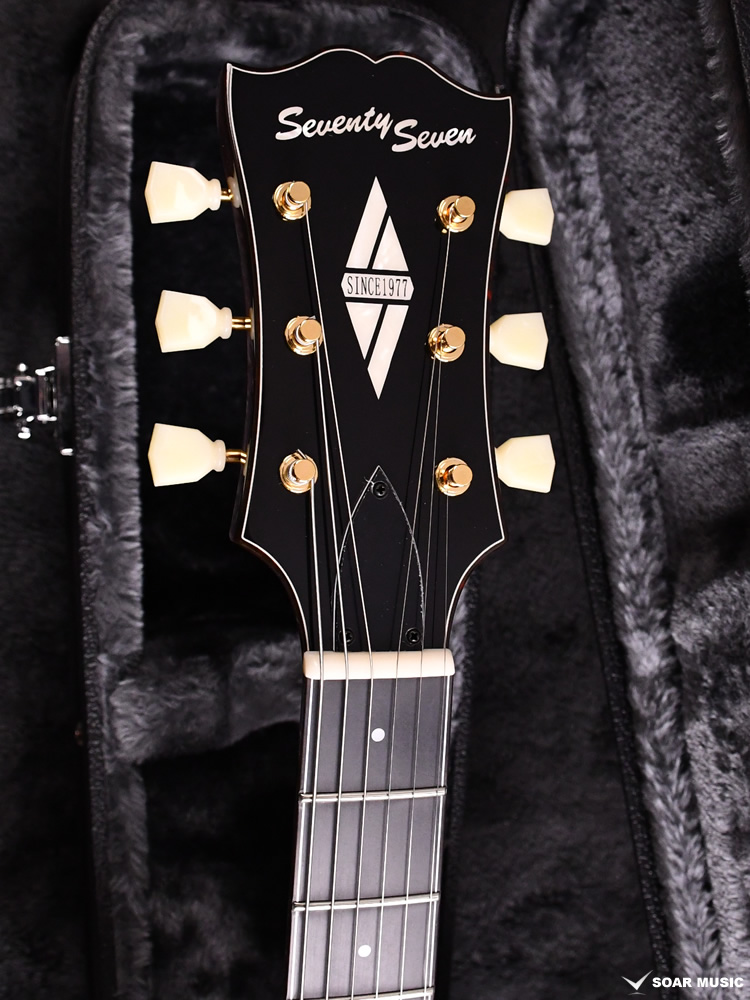 アルニコ2マグネットを採用したSeventySevenオリジナルピックアップ、 「SeventySeven AL2」を搭載。クリーントーンではきらびやかな鈴鳴り感を表現しつつも耳に痛くない暖かさを併せ持ち、ドライブをかけると歯切れの良いエッジの効いたクランチサウンドを出力します。プレイヤーの創造力を膨らませて豊かな演奏表現を生み出します。