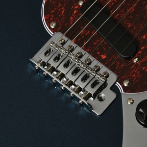 ネックにローステッドメイプルを使用したSSHレイアウトのモデル。 ピックガードやノブにミントカラーのパーツを採用し、オールドギターの風格を漂わせるルックスに仕上げました。 SSHピックアップレイアウトで粒立ちの整ったクリーントーンから、パワーあるオーバードライブサウンドまでジャンルを問わず幅広く音作りをすることができます。更にコイルタップスイッチを搭載し、リアハムはシングルピックアップの様なきらびやかなサウンドを出力します。