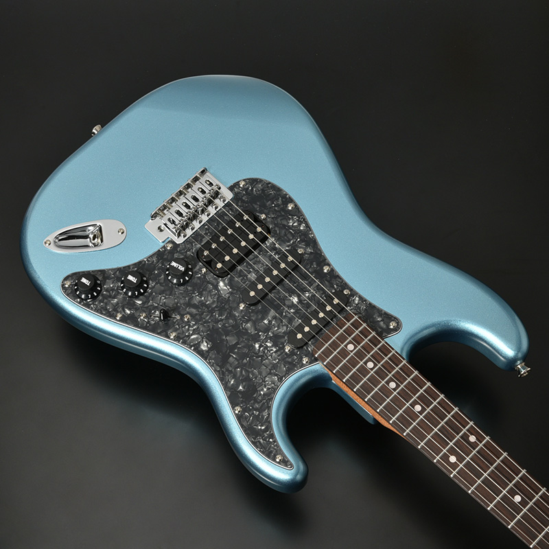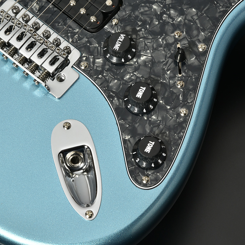 ネックにローステッドメイプルを使用したSSHレイアウトのモデル。 ピックガードやノブにミントカラーのパーツを採用し、オールドギターの風格を漂わせるルックスに仕上げました。 SSHピックアップレイアウトで粒立ちの整ったクリーントーンから、パワーあるオーバードライブサウンドまでジャンルを問わず幅広く音作りをすることができます。更にコイルタップスイッチを搭載し、リアハムはシングルピックアップの様なきらびやかなサウンドを出力します。