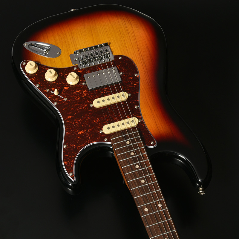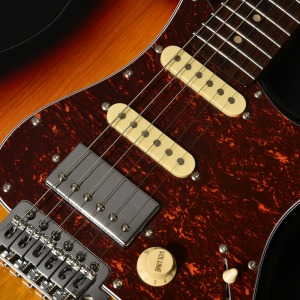 Bacchus Universe Seriesで特に人気の高い「BST-2-RSM」モデル。その特徴はSSH(シングル・シングル・ハムバッカー)配列のピックアップ仕様。リアポジションのハムバッカーにはコイルタップ機能を搭載し、シングルコイルとしての使用を可能にすることで幅広い音作りに貢献します。