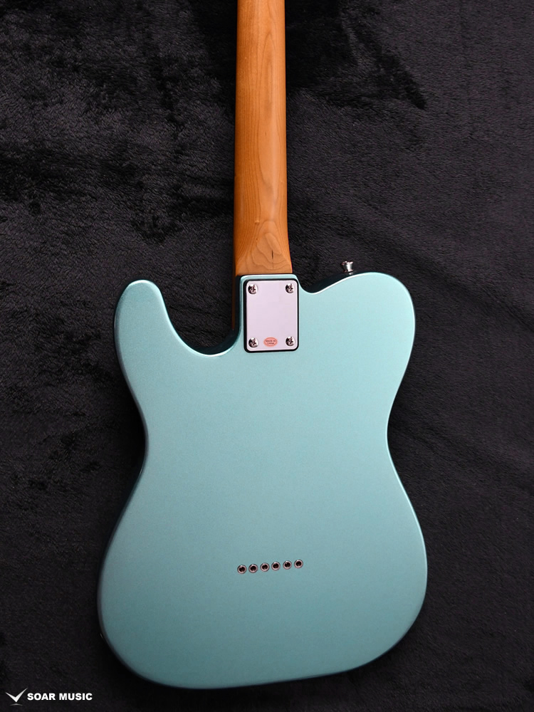 ローステッドメイプルとはメイプルを高温で加熱処理して材の中の水分や油分を揮発させることにより木材を経年変化した状態に人工的に近づけた材のことです。経年変化が進んだ材は歪みやねじれが生じにくくなります。ネックに使用されるとその効果は安定性だけでなくサウンドにも及び、豊かな生鳴りと経年変化したビンテージのようなこなれたトーンを生み出します。一般的に高級機種などで用いられる材ですが、手に取りやすい価格帯に落とし込むことに成功しました。