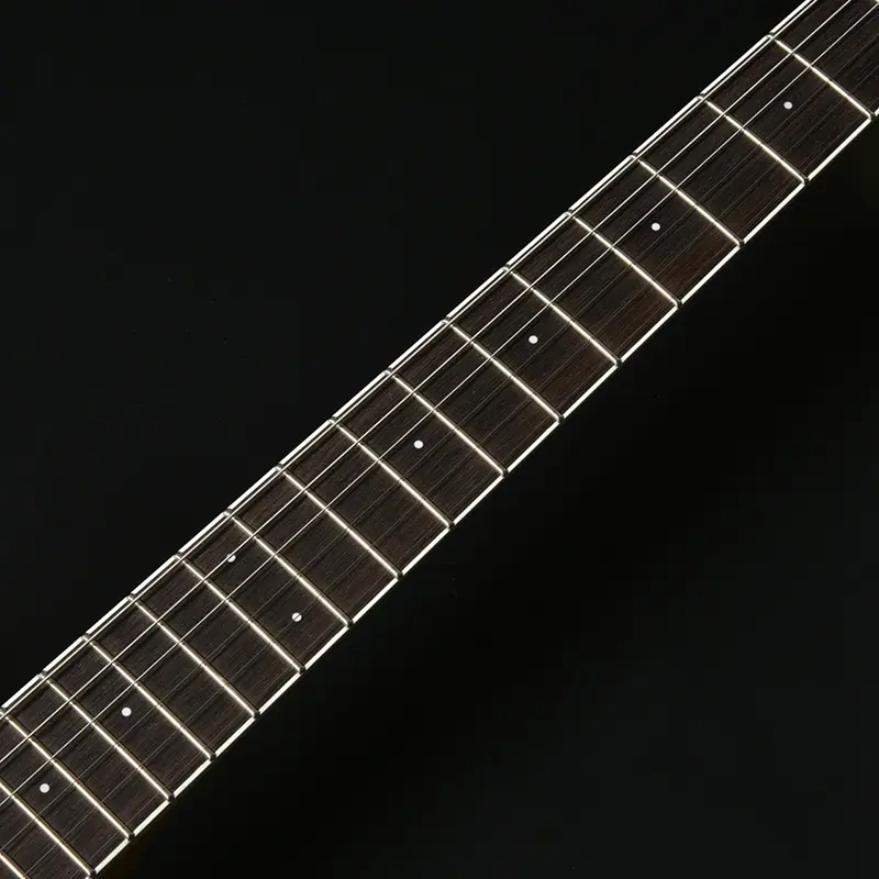 ネックには指板材として定番のインディアンローズウッドを使用。指板サイドのバインディングと通常より小さなドットポジションマークを採用し、洗練された印象のデザインです。