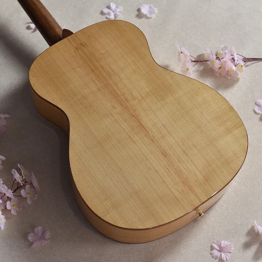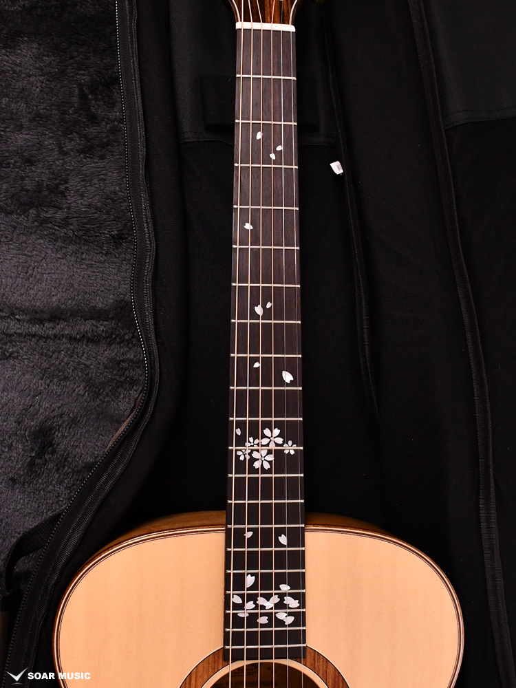 「零れ桜」の名にふさわしく、アコースティックギターの側面と背面にあたるサイドバックには、ラミネート加工された国産の桜材を使用。あえてカラーリングは施さず、一本一本異なる個性を持つ桜材特有の温かみのある淡い桃色の木肌の魅力をダイレクトに堪能いただけます。