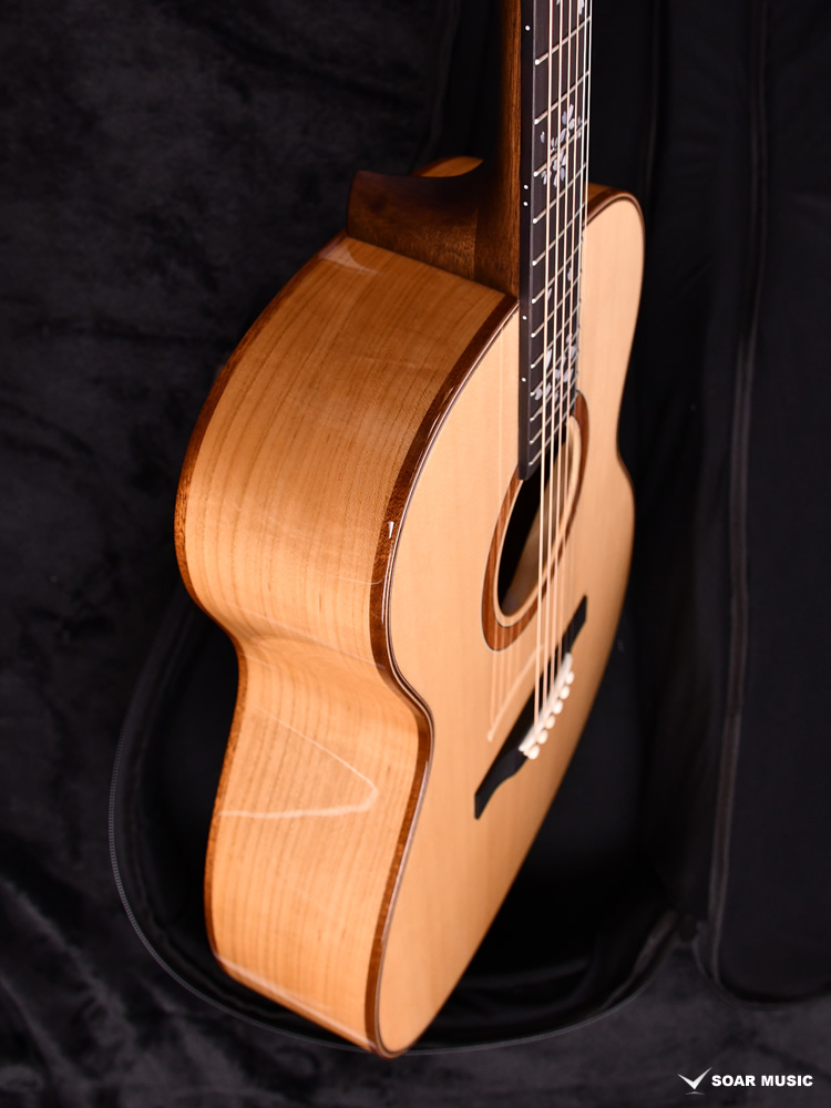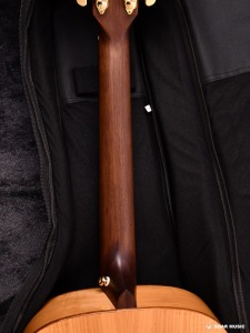 最大幅が約382mm、最大厚が約105mmの小ぶりなボディは体の小さいプレイヤーでも抱えやすく体にフィットします。 HJ-OSAMURAISAN IIと同じく、ナットからサドルまでの距離が628mmのミディアムスケールを採用。ロングスケールと比較して弦の張力が低く、比較的弦が押さえやすい仕様です。おさむらいさんが得意とする指弾きによるソロギターなど幅広い音楽表現への挑戦を後押します。