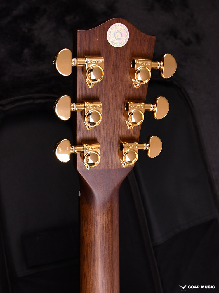 サイドバックと同じく、国産の桜材を用いて作成された本機のみの独自デザインのサウンドホールプレート。