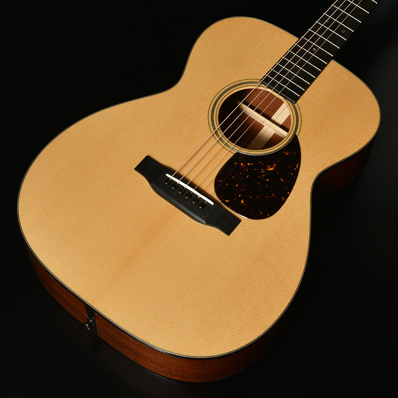 ボディマテリアルは、ボディTOPにジャーマンスプルース、サイドバックにホンジュラスマホガニーのOM-18モデル。