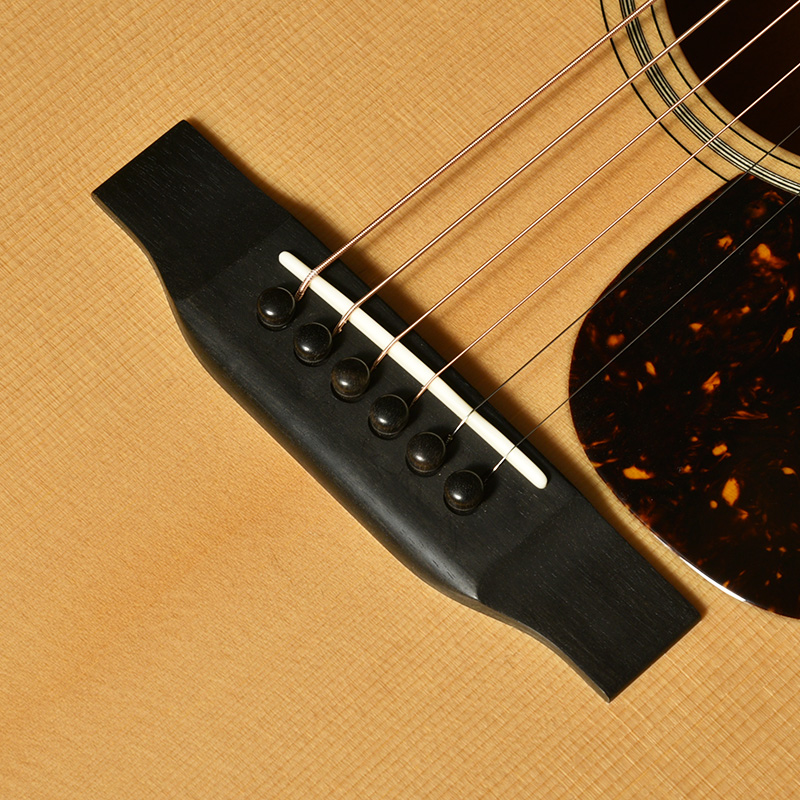 ブレイシングは、1934年頃のスタイルをインスパイアしており綺麗で澄んだ音色でありながらも甘さとまろやかさも感じることができ、フィンガー・コードプレイを問わずに気持ちよく弾けるギターになっています。