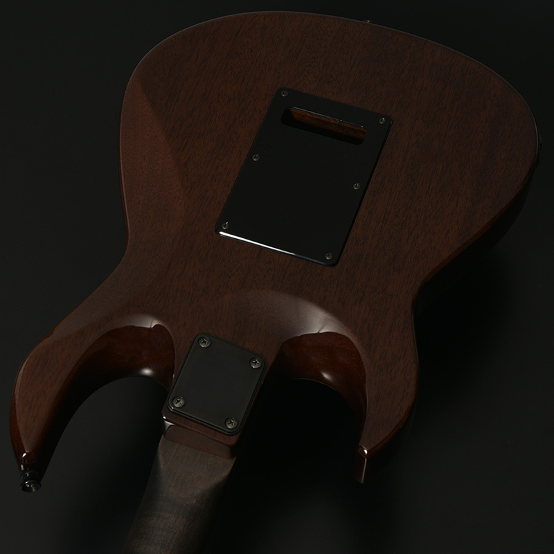 ボディバックにはアフリカンマホガニーを贅沢に1ピースで使用。素材の色味を最大限に生かしたナチュラルカラーの塗装がボディトップの力強い表情を際立たせつつ、深みのある質感を演出。実機全体を統一感のある洗練された風合いへと昇華させています。