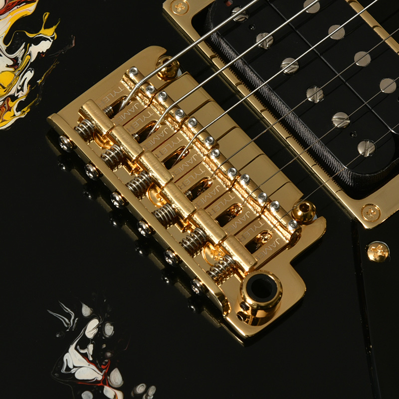 GOTOH社製の2点支持トレモロユニット、510T-SF1を搭載。510Tシリーズはトレモロユニットとしての性能を徹底的に追求。可動の支点となるエッジ部には高硬度のクロムモリブデン鋼を採用し、優れた強度と耐摩耗性を確保しています。その結果、アーミング後のチューニング安定性が飛躍的に向上し、演奏時の精度と信頼性を高めています。サドルには「James Tyler」のロゴが入った、STR JTG Designカスタム仕様のブリッジです。