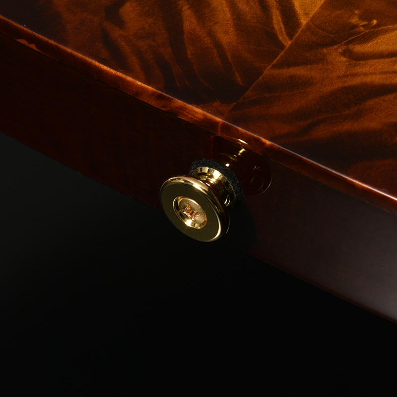 飛鳥工場の木材ストックより厳選されたハイグレードのフレイムメイプルを使用。限定モデルにふさわしいゴージャスなルックスがプレイヤーの手元を華やかに彩ります。