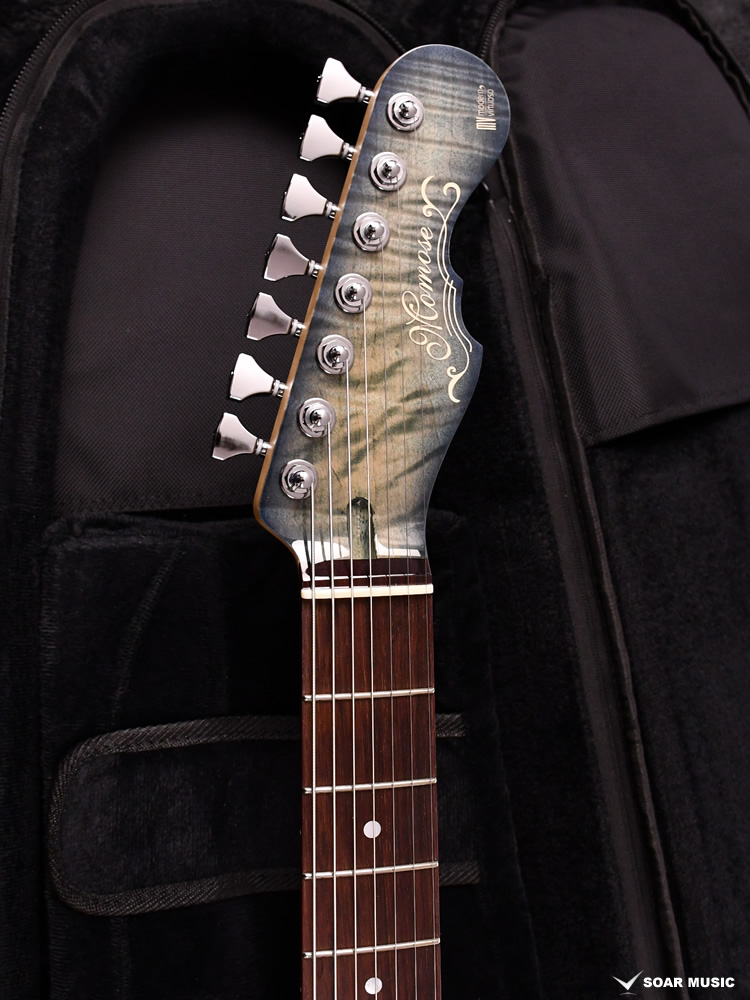 Momoseブランド初となる7弦仕様を採用した”MC7-MV”。トラディショナルなモデルから持ち替えても違和感の少ないボディ形状に設計され、Mojotone社に特注した7弦用ピックアップを搭載しています。