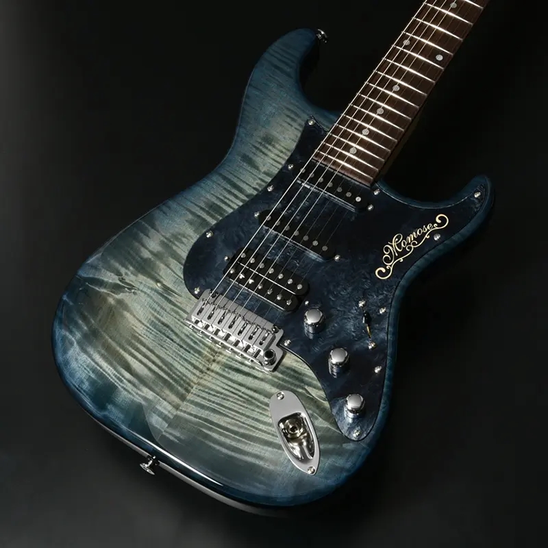 シリーズ名に含まれる『Virtuoso』とは芸術の(特に音楽の)名人、名手、大家、巨匠、という意味を持つ英語です。誰もが自分の音楽を表現し、発信できるようになった現代に求められる仕様を、Momose独自の解釈により盛り込みました。Hipshot Glip-Lockペグの搭載やGOTOH 製のアーミングに優れたブリッジの新採用など、ハードウェアも一新されています。