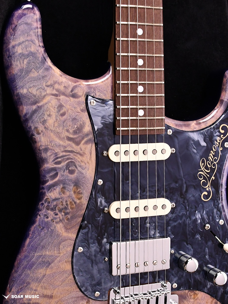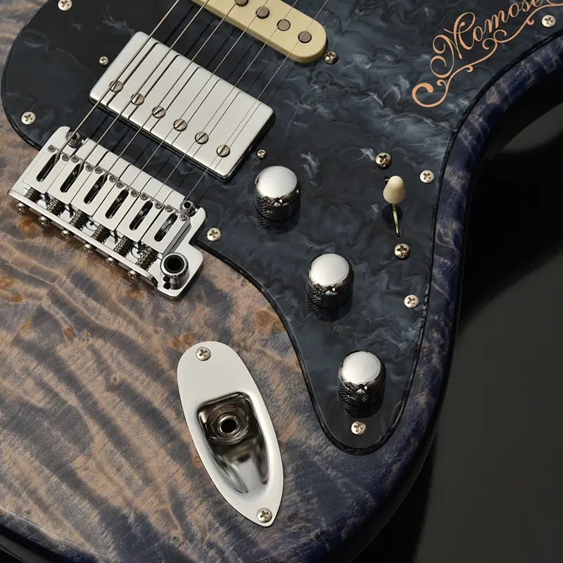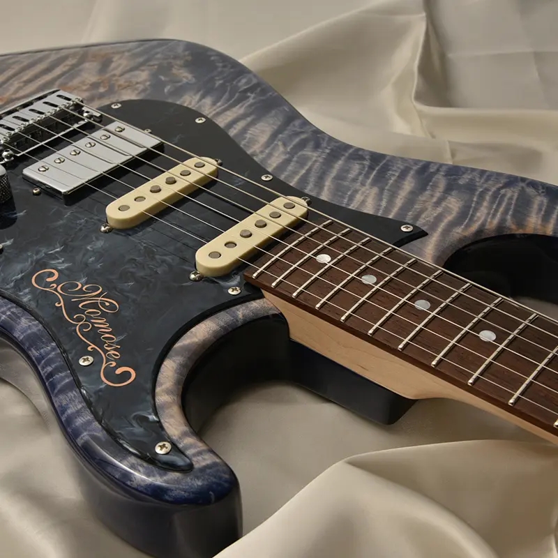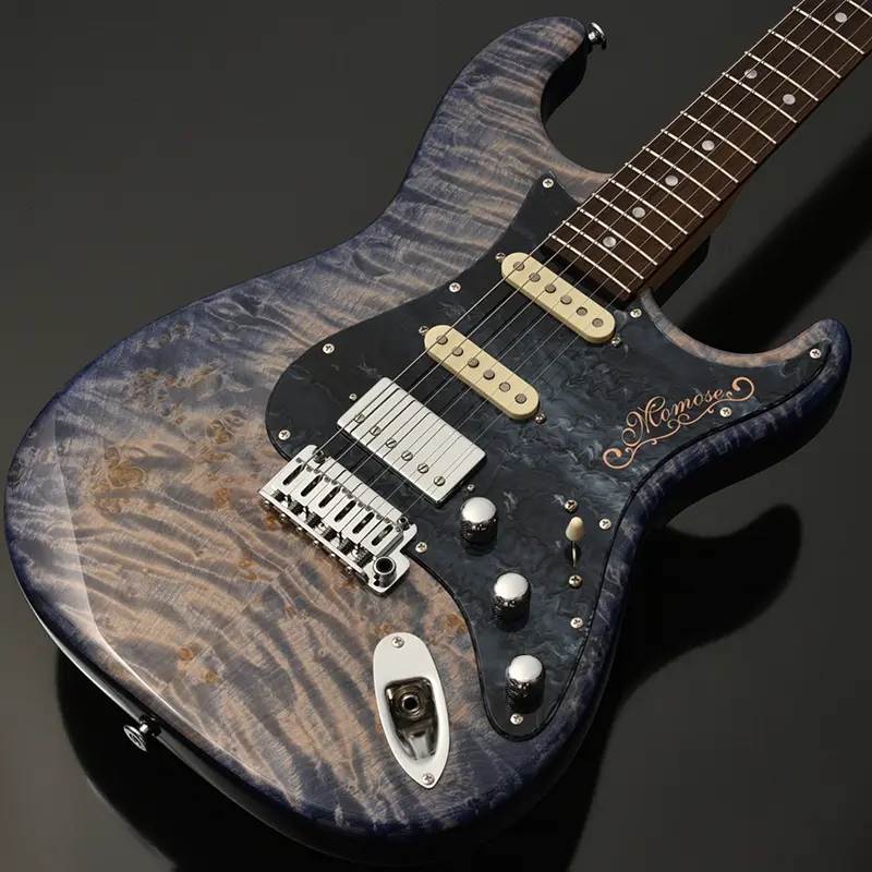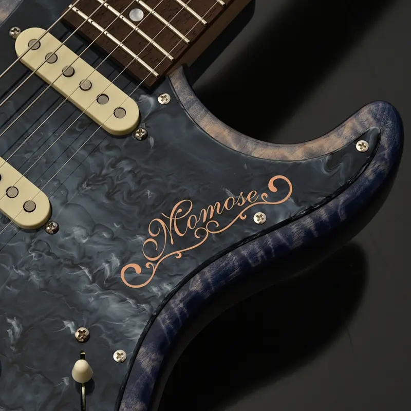 ネックには狂いの少ない柾目材で木取りされた材料を使い、ナットには「High Density Bone(水牛骨)」を使用し楽器としてのクオリティを上げると共に、パーツ関連にはUS製MojotoneRピックアップの搭載を始め、モダンシーンに合わせたハードウェアを組み合わせ、現代の音楽シーンを走るプレイヤーに送るMomoseの提案です。