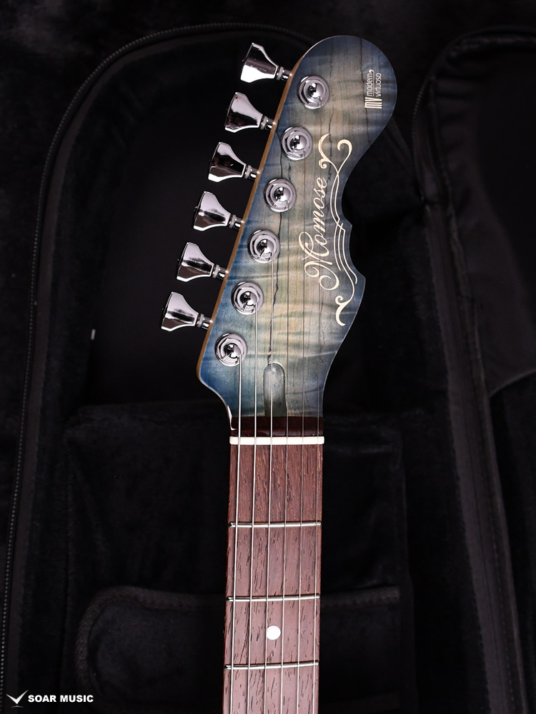 シリーズ名に含まれる Virtuoso とは芸術の(特に音楽の)名人、名手、大家、巨匠、という意味を持つ英語です。誰もが自分の音楽を表現し、発信できるようになった現代に求められる仕様を、Momose独自の解釈により盛り込みました。Hipshot Glip-Lockペグの搭載やGOTOH製のアーミングに優れたブリッジの新採用など、ハードウェアも一新されています。